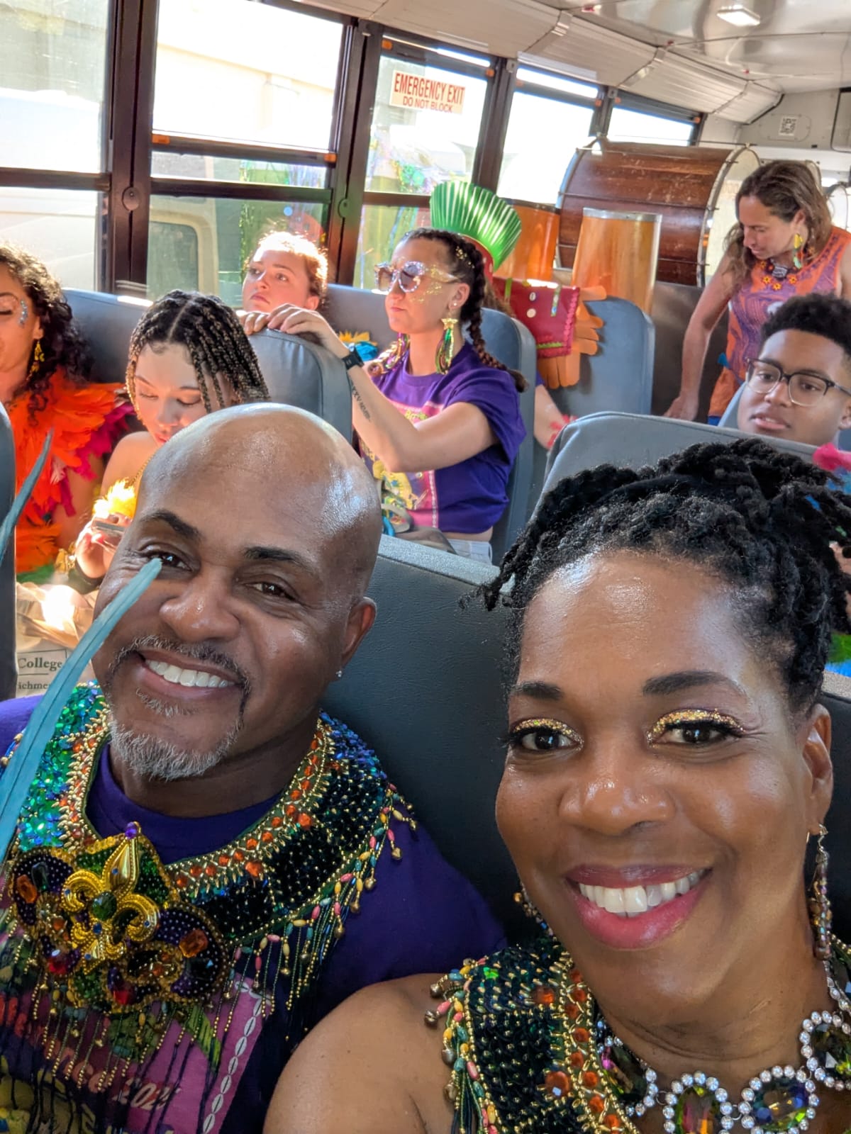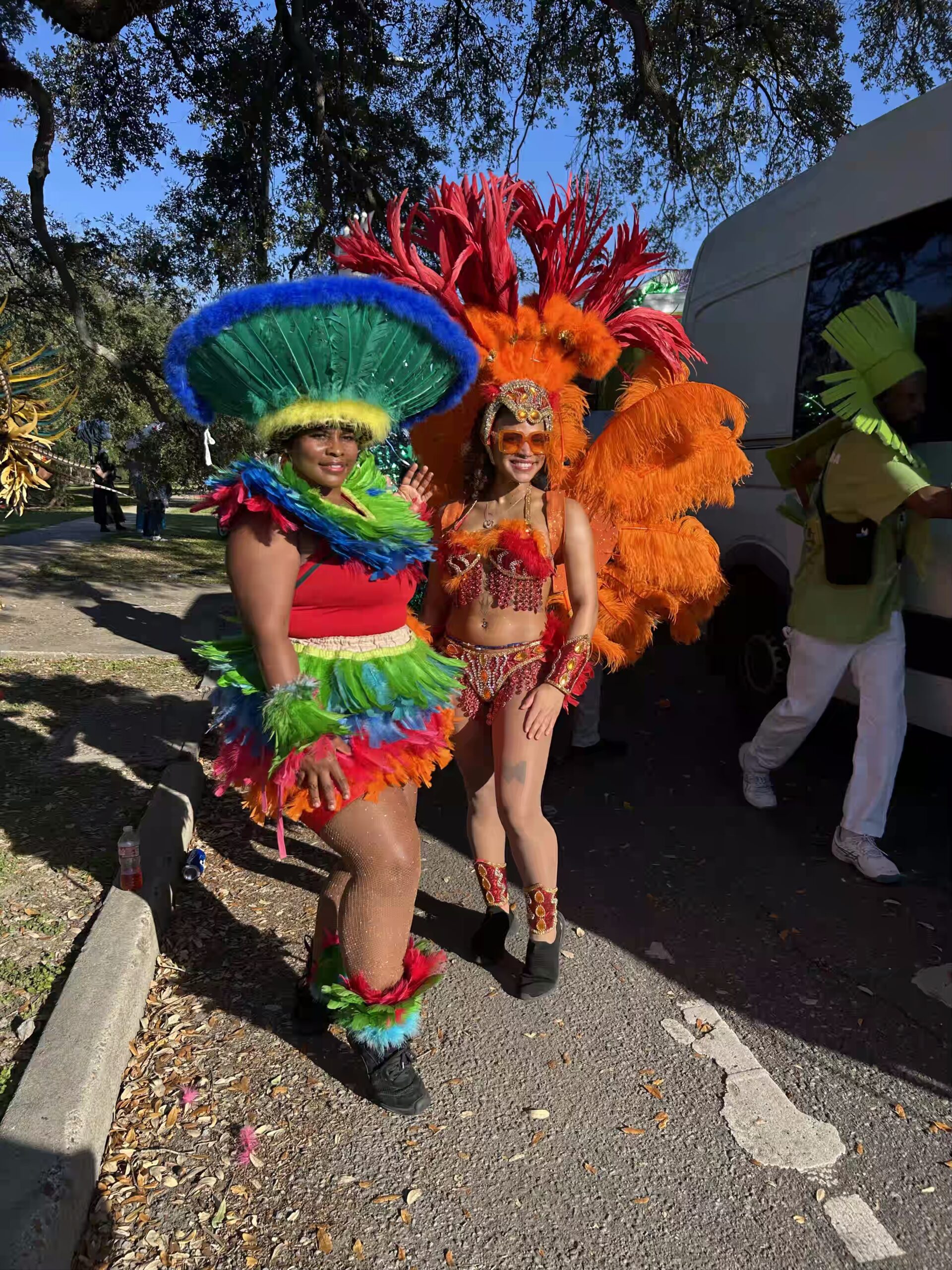 Using Afro-Brazilian rhythms and dance of Carnaval in Rio and Bahia, a mixture of both. Plus, this is a melting pot city, we have to include the Oxossi rhythms in this Carnaval 2025 mixture of Brazil and New Orleans rhythms.